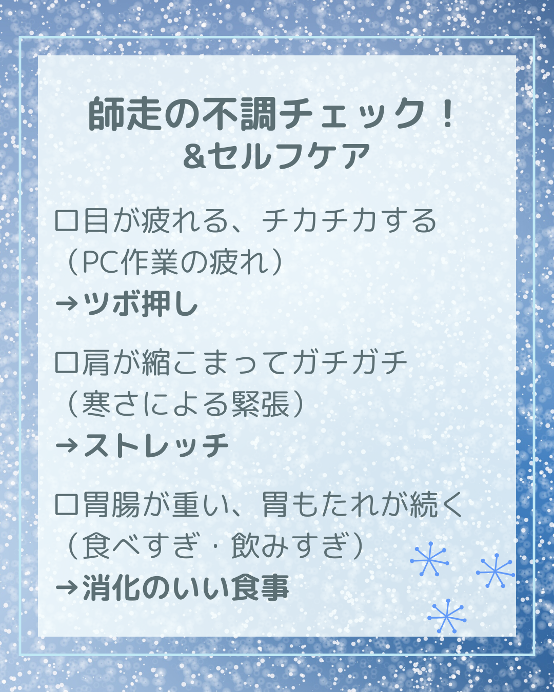 慌ただしい師走は、仕事や忘年会などで心身ともに疲れやすい時期です🏃🏻!