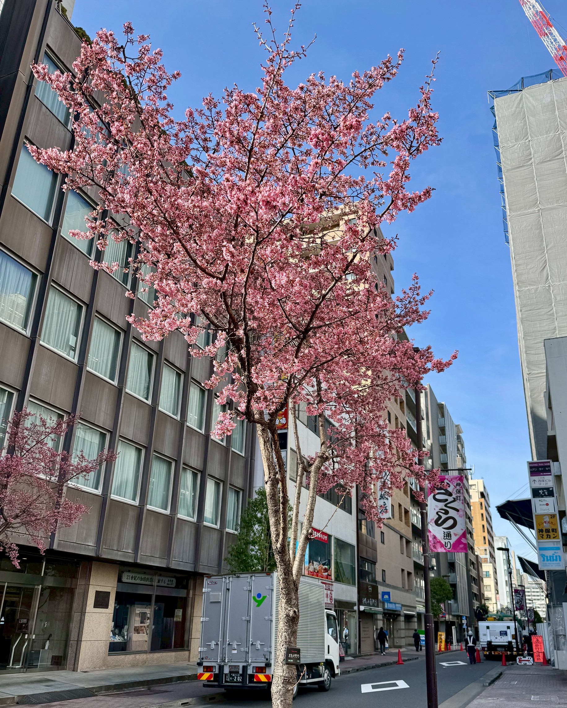 目の前のさくら通りも、早咲きの桜が花開いてきて、通るたびにウキウキします♪