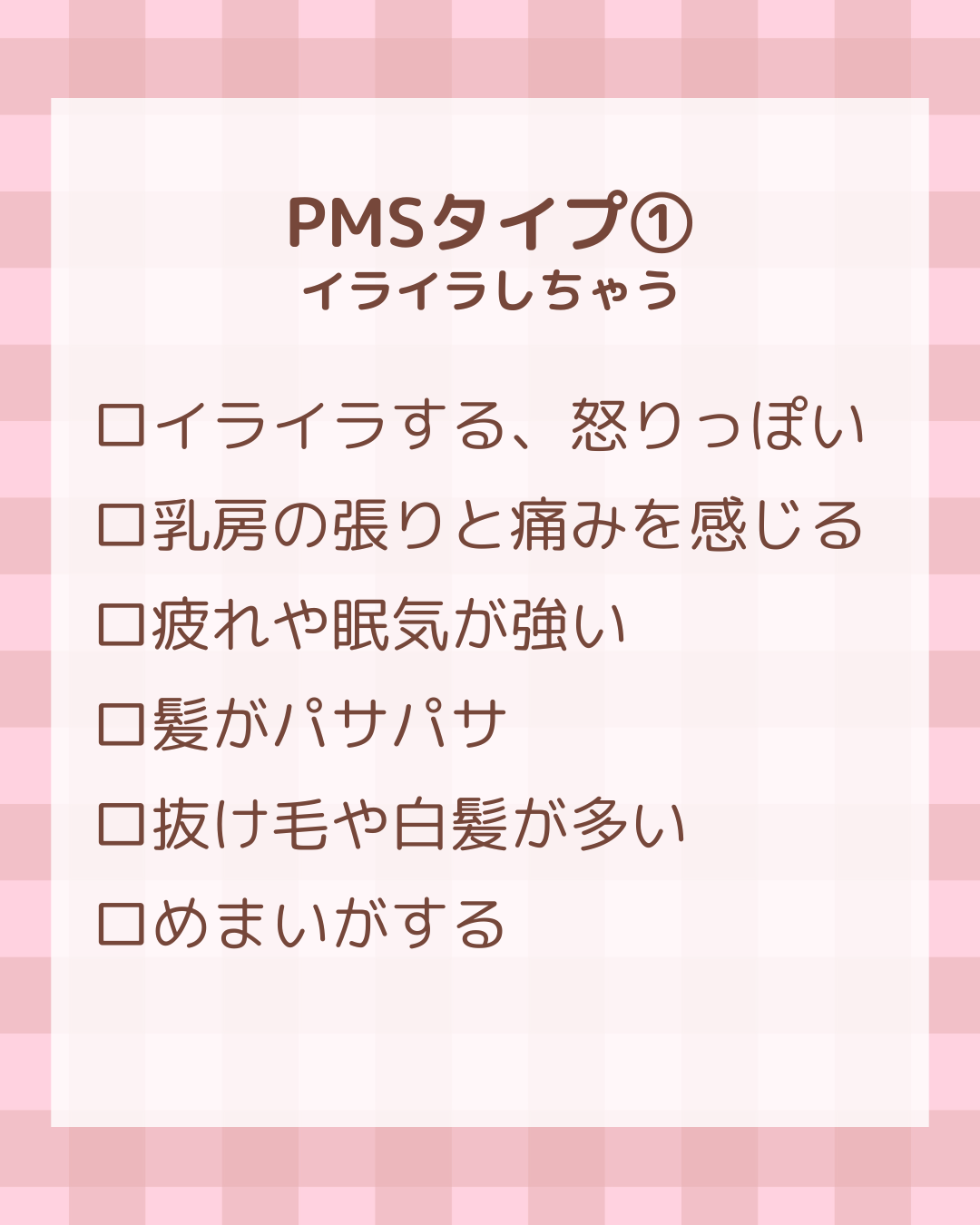当てはまるものが多い場合、「気の流れの滞り」が原因のPMSタイプです!